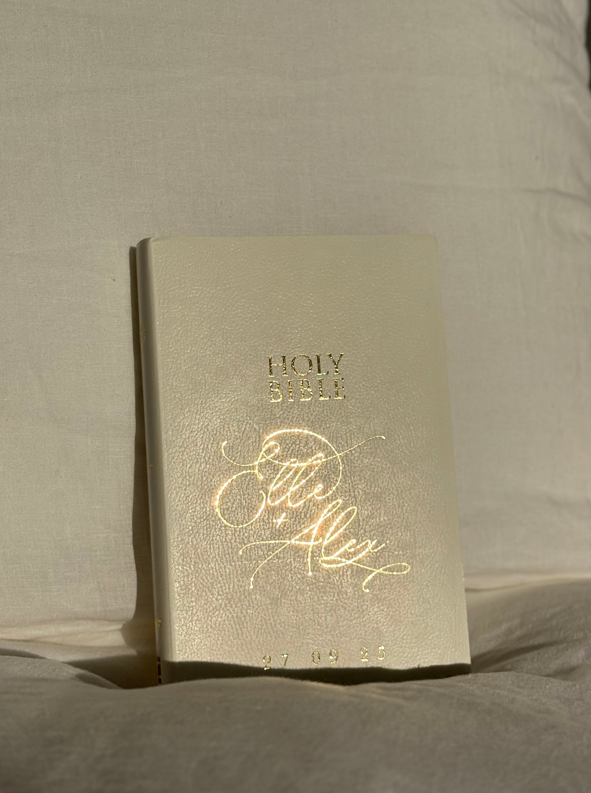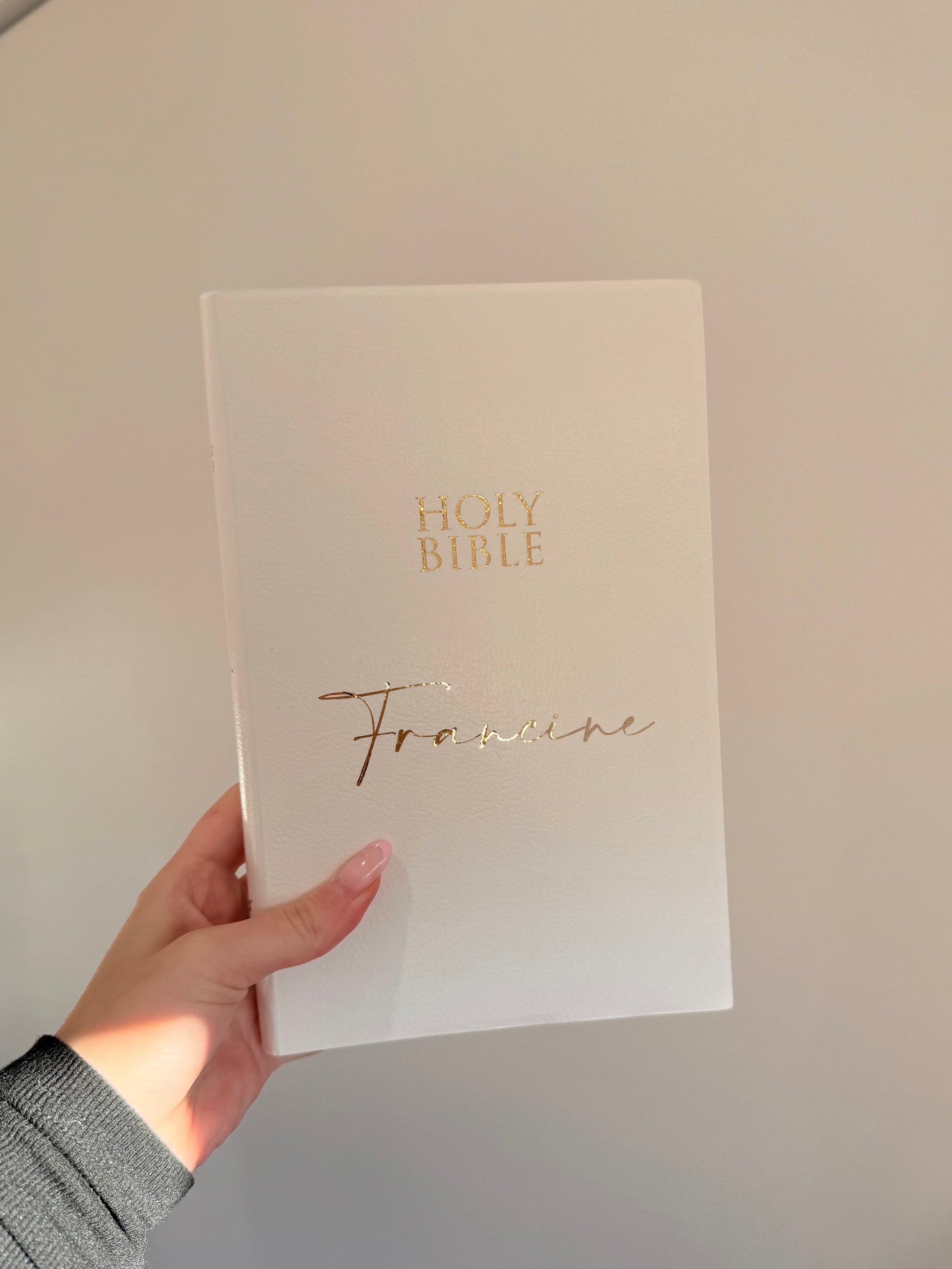 Holy Bible personalised with gold name.